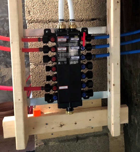 The existing water lines in the house were CPVC and were not in good shape. Originally, my dad wanted to run new copper water lines. He ran out of time when he came for his visit to help us and, since we had no experience with copper, we decided to go with pex. A little research led me to find the Viega Manabloc system.